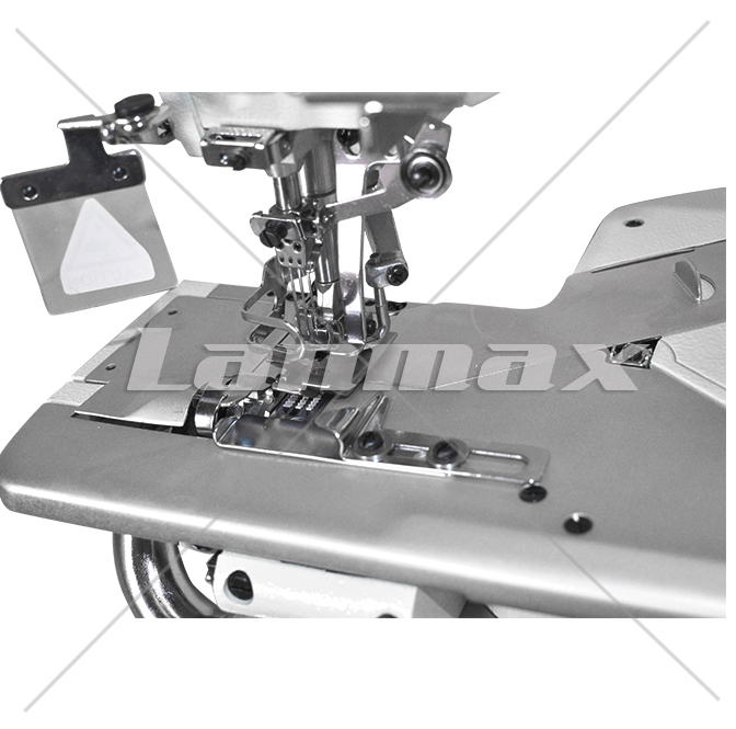 Galoneira cilíndrica com refilador esquerdo direct drive. Indicada para bainha de camisetas. Refila e suga a sobra de tecido, garantindo um acabamento perfeito.
