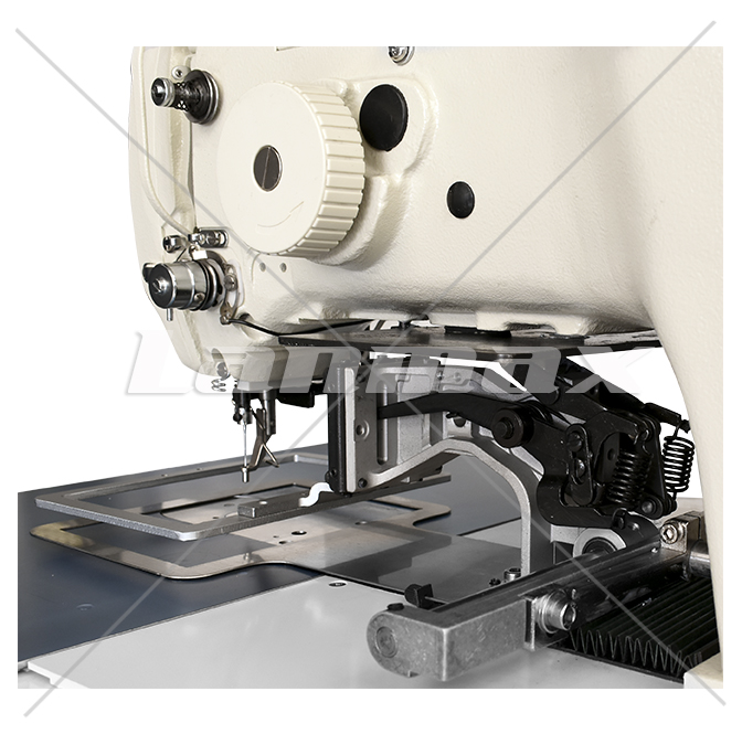 Filigrana com área de 150mm x 100mm. Ideal para costura em jeans, bolsas, fichário, carteiras, cintos de segurança, luvas, etiquetas, pulseira de relógio, botas, cabedais em couro, etc. Possui levantamento elétrico do calcador acionado por solenóide.