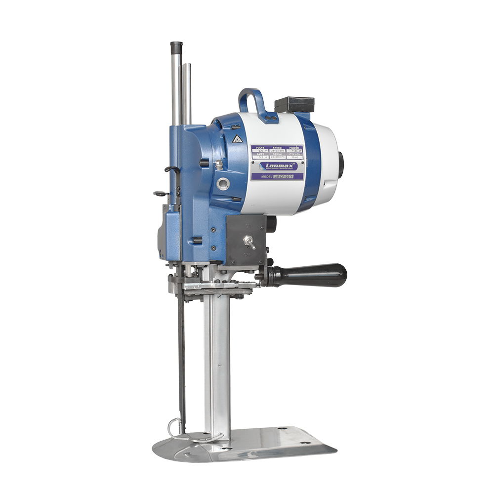 Máquina de corte com faca vertical de 10 polegadas, com capacidade para cortar enfestos de até 200 mm de altura. Equipada com motor de 1168 W de potência, é ideal para cortes em grande volume e indicada para diversos tipos de materiais e espessuras, como algodão, lã, seda, jeans, tecidos sintéticos, lona, plástico, EVA, entre outros.