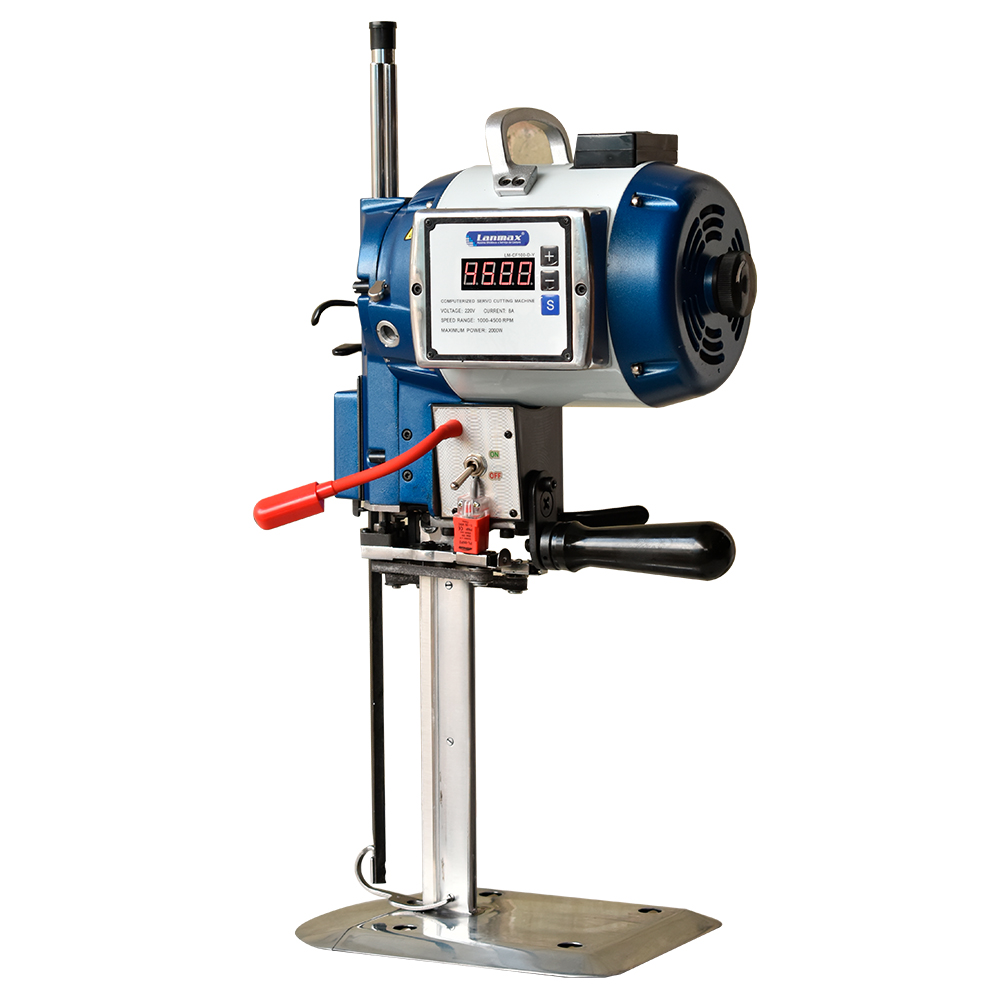 Máquina de corte com faca vertical de 10 polegadas, capaz de cortar enfestos com até 200 mm de altura. Equipada com motor servo de 2000 W e painel de comando para ajuste de velocidade conforme o tipo de tecido. Ideal para cortes em grande volume e compatível com uma ampla variedade de materiais, como algodão, lã, seda, jeans, sintéticos, lona, plástico, EVA, entre outros.