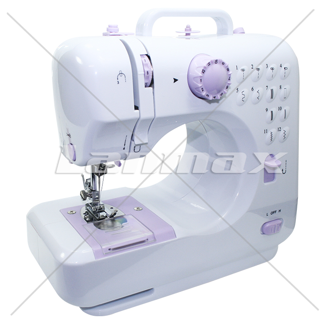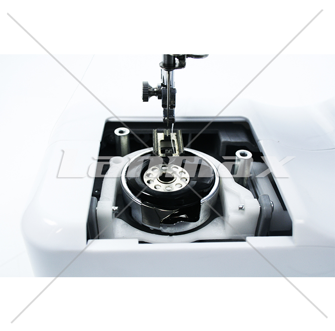 Máquina com design compacto e leve, acompanha adaptador AC/DC (opção de alimentação à pilha) e pedal, deixando as mãos livres para o manuseio. Possui corta fio e alça para transporte.