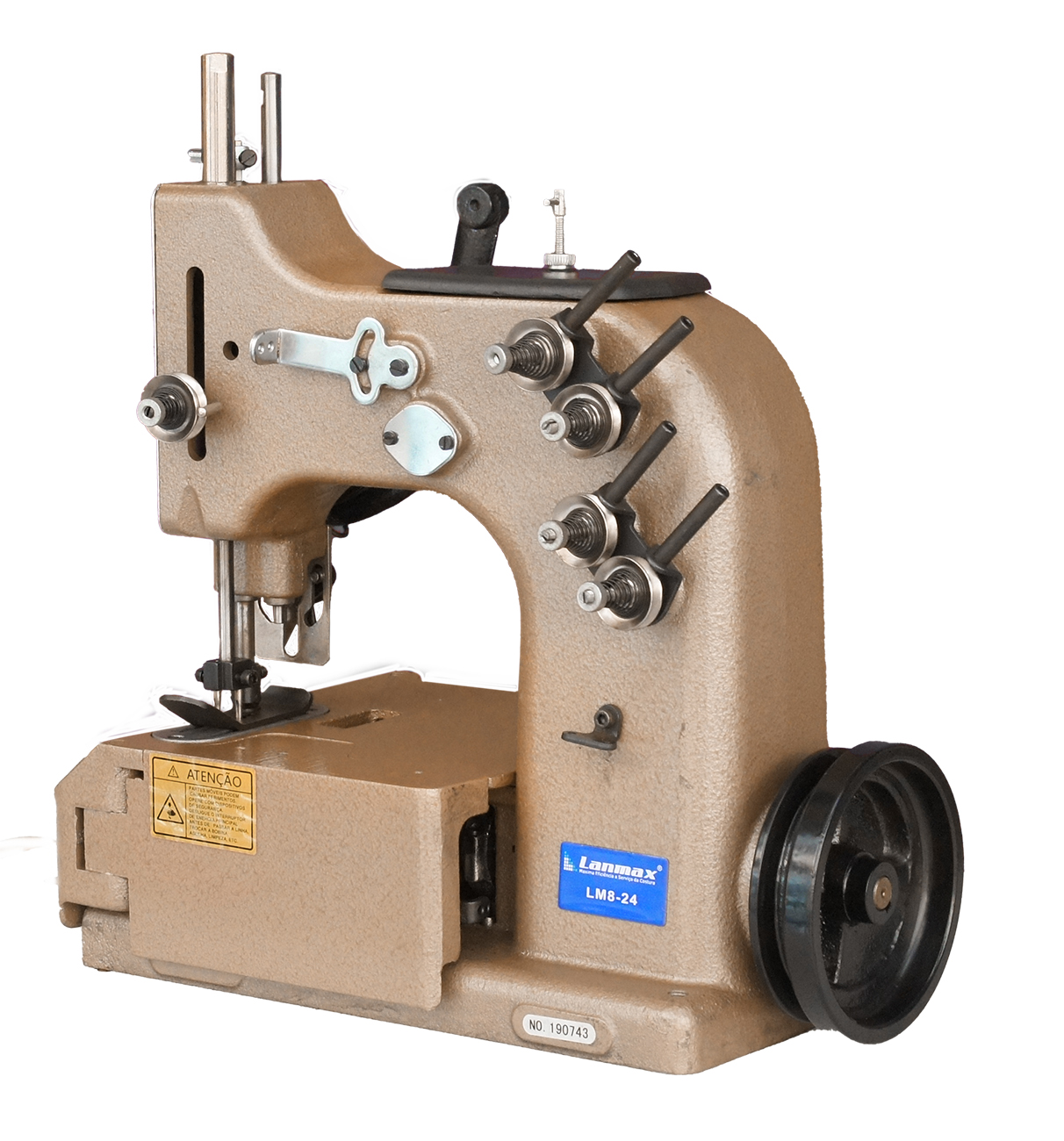 Máquina de sacaria 2 agulhas, 4 linhas e ponto corrente. Indicada para costurar materiais pesados como sacos, big bag, sacos de vedação para grão, alimentos, produtos químicos e outros. A máquina trabalha com 4 linhas simultaneamente, sendo duas nas agulhas e outras duas no looper, proporcionando firmeza e resistência.