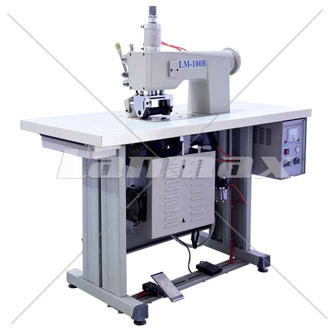 Máquina ultrassônica Lanmax, substitui a agulha pelo processo de solda. Pode ser usada para soldar e refilar, fazer gravações lisas, vazadas ou em baixo relevo, transferir cor sem uso de cola ou linhas.