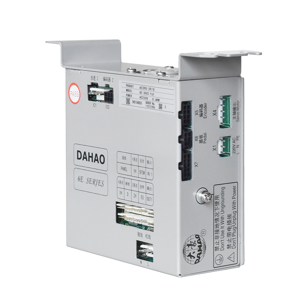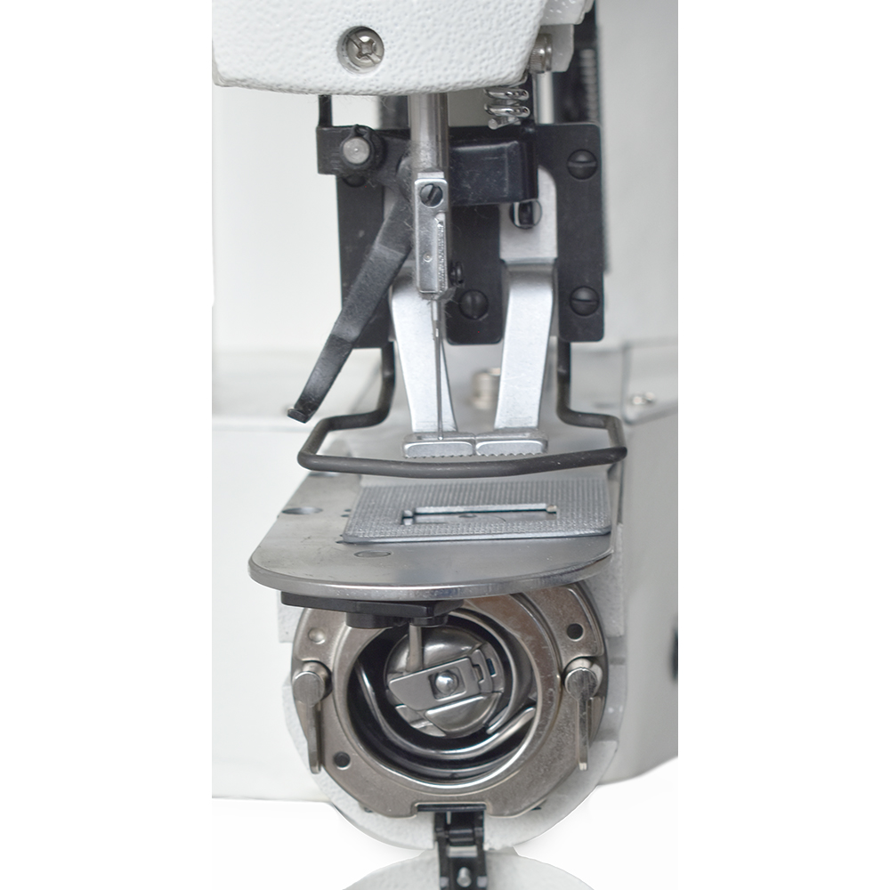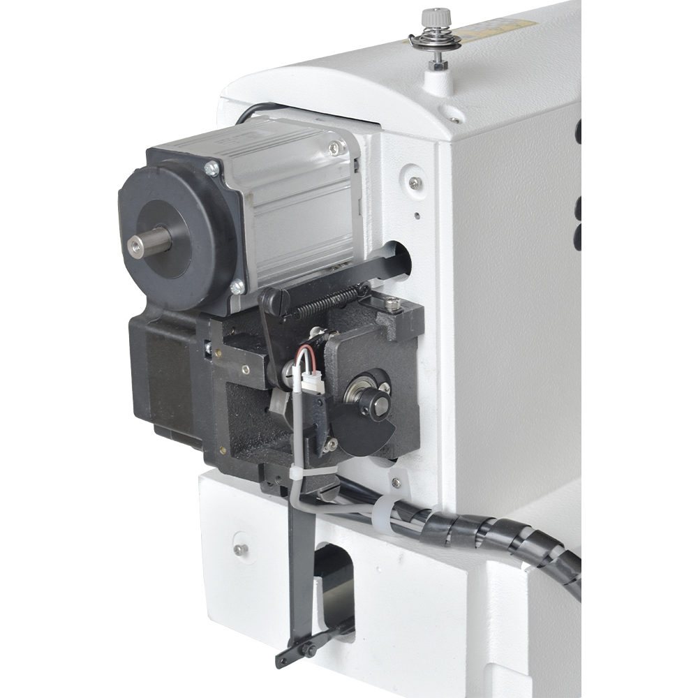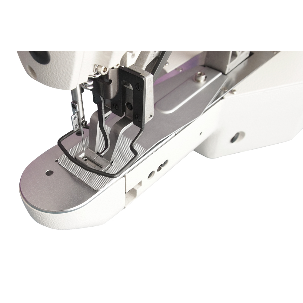 Máquina travete Direct Drive de 42 pontos com motor eletrônico embutido, control box e painel de comando de marca Dahao. Indicado para confecções de boné, camisaria, jeans, malharias, bolsas, moda intima, moda praia, uniformes, fitness, infantil, etc.